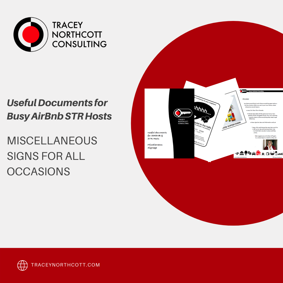 I have included a collection of signs. Obviously you won’t need all of them but these are what we use in our properties. Pick the ones that work for you.